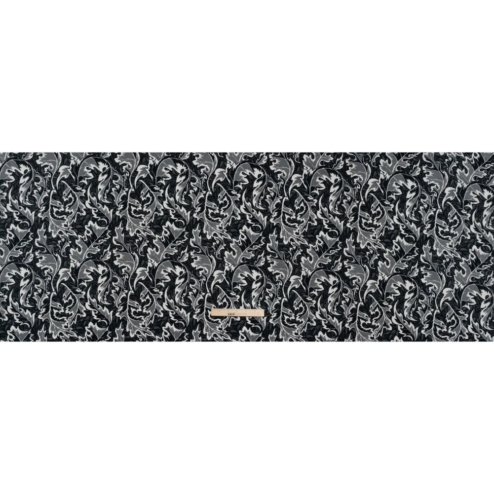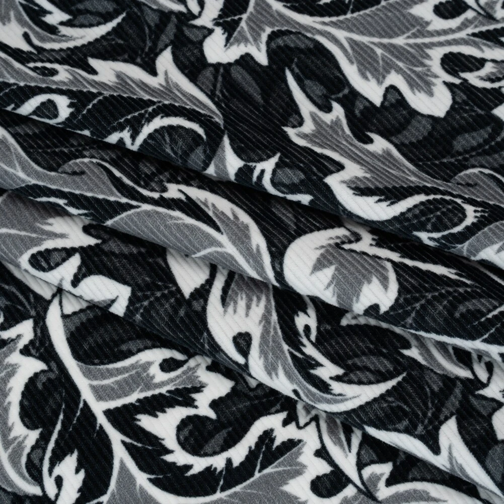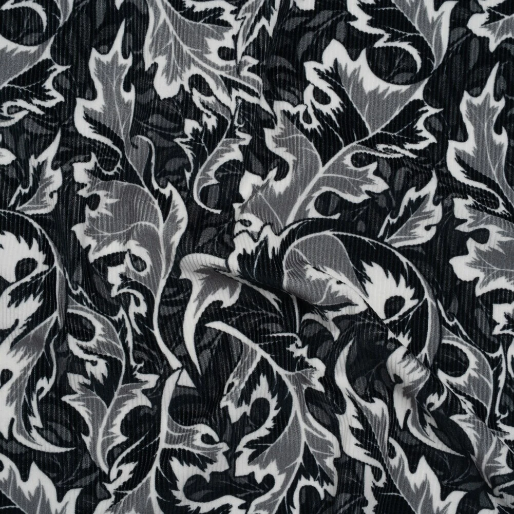 1 Yard Black White Gray Oak Leaves Soft Cotton Corduroy Print Fabric 59 Width