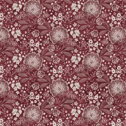 Red Jacobean Allover Elizabeth Wideback Fabric Per Yard: