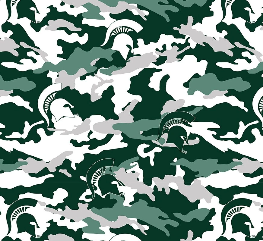 Sykel Enterprises-Michigan State University Fleece Fabric-Michigan State Spartans Camouflage Fleece Blanket Fabric-Sold By The Yard