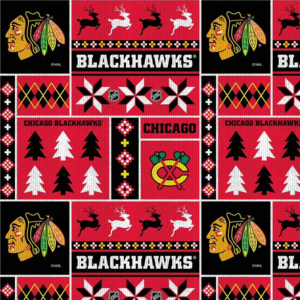 Sykel Enterprises NHL Team Fleece Blanket Fabric-Chicago Blackhawks Holiday Sweater Fleece Fabric