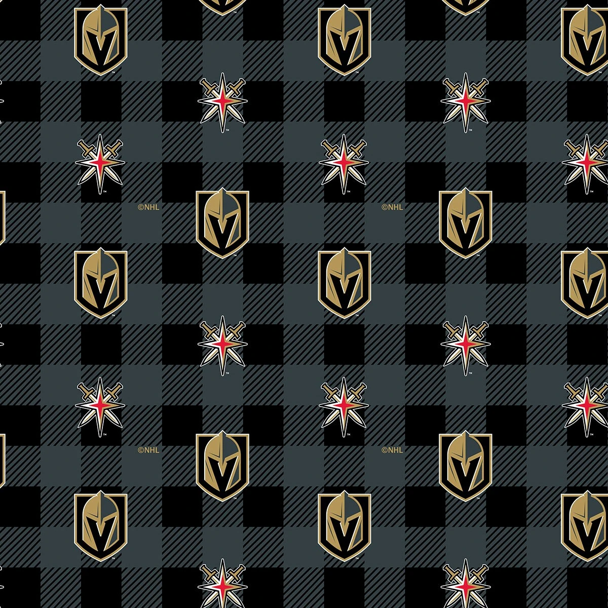 Sykel Enterprises NHL Team Fleece Blanket Fabric-Las Vegas Golden Knights Buffalo Plaid Fleece Fabric