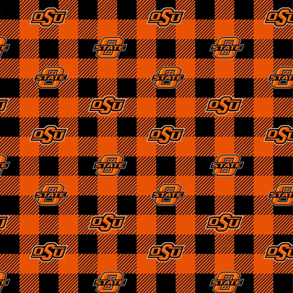 Sykel Enterprises-Oklahoma State University Fleece Fabric-Oklahoma State OSU Cowboys Buffalo Plaid Fleece Blanket Fabric-Sold By The Yard