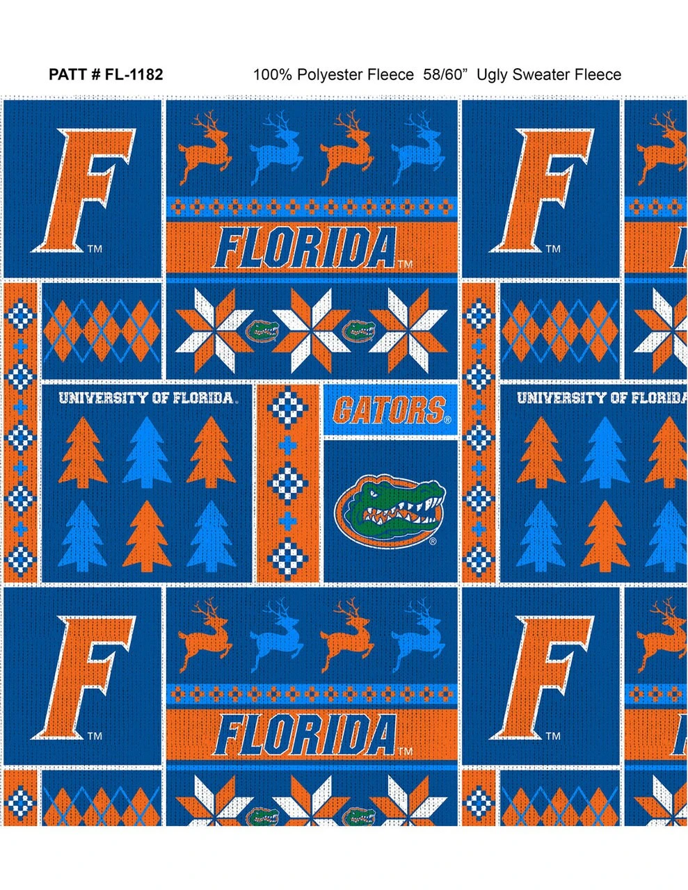 Sykel Enterprises-University Of Florida Fleece Fabric-Florida Gators Christmas Fleece Blanket Fabric-Sold By The Yard