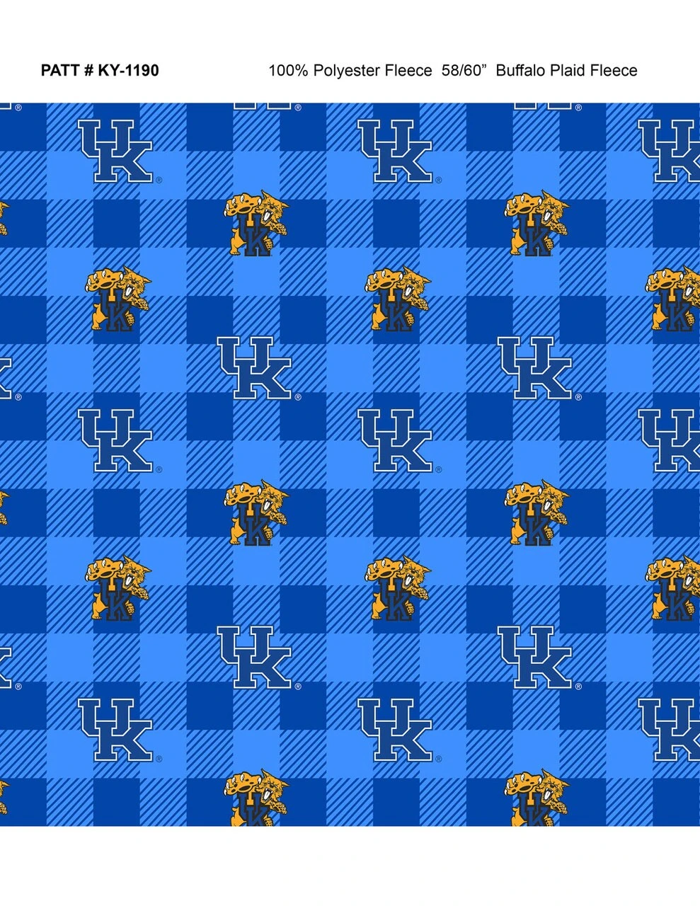 Sykel Enterprises-University Of Kentucky Fleece Fabric-Kentucky Wildcats Buffalo Plaid Fleece Blanket Fabric-Sold By The Yard